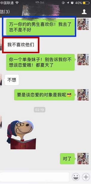 这这边有了很多兄弟晕圈的问题,女孩还约了群里另一个男孩,的确很困惑,类似你准备约会的时候有女孩,有对手,有你。但是徐学员通过1V1的私人定制课程培训之后,心态保持得非常好!不为所动,其他男人都是渣~完全构不成任何威胁,这就是男人该有的态度!