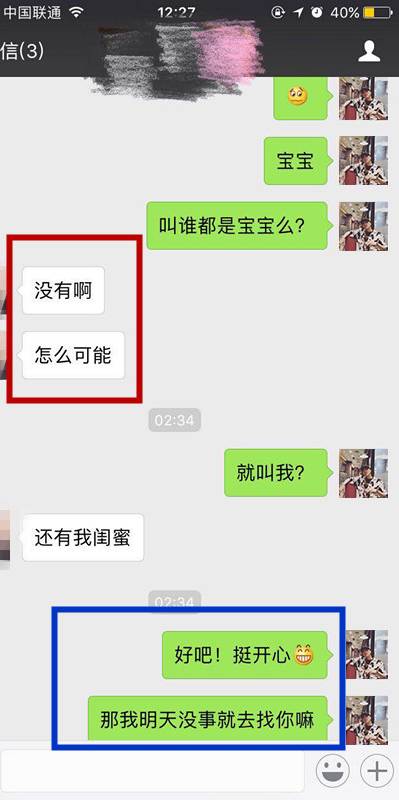从聊天可以看出,徐同学真的够狠辣~女生已经叫宝宝了还不放过她,继续又是一波“筛选”询问女孩是否叫谁都是宝宝,强化升级关系~~而从这边的回应当中也可以看到,服从了。