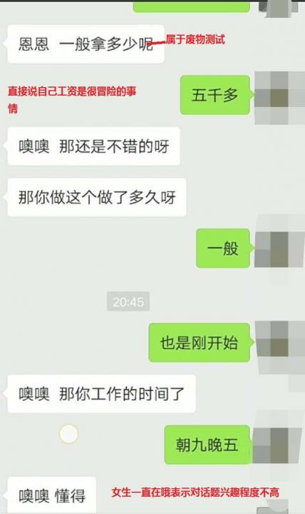 女人问你工资这个时候你要去进行曲解他的意思。并且有的同学工资不是很高不要让你的工资去成为你感情的束缚。在你们前期工资比较低的情况下,请尽量少吹牛b,多去用曲解化解尴尬,在你前期吸引稳定之后再去给说些隐私问题。