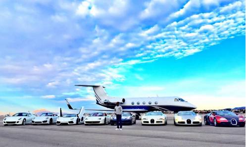 梅瑟威在网络上晒过他的8台超级跑车与一架私人飞机。